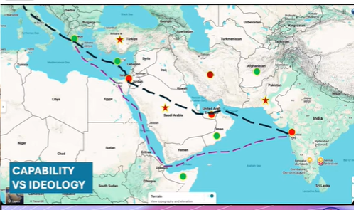 Black line represents the India-Middle East-Europe Economic Corridor (IMEC): https://en.wikipedia.org/wiki/India%E2%80%93Middle_East%E2%80%93Europe_Economic_Corridor