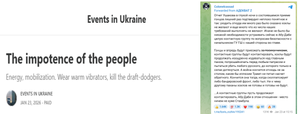 Left: source: https://eventsinukraine.substack.com/p/the-impotence-of-the-people. Right: source: https://t.me/boris_rozhin/195341