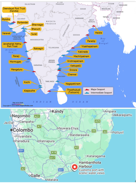 Source: https://www.facebook.com/Team.ISF/posts/-as-per-available-details-the-iranian-iris-dena-ship-left-vizag-to-go-around-sri/1348376753979232/ [21]  The course through the Bay of Bengal appears be too long eastward to have been likely if the Dena’s orders were to return to homeport as quickly as possible. A course with that objective should have taken the frigate and its escorts through the Palk Strait between Dhanushkodi, India, and Talaimannar, at the northern tip of Sri Lanka; the strait there is 16nm-wide territorial waters divided between India and Sri Lanka.  No Indian Navy map of the course of the Dena, Lavan and Bushehr after February 25 has been published nor any report identifying their precise positions on February 28 when the request for safe harbour was officially made to India.  The safest and closest safe harbour for the three Iranian vessels on February 28 should have been either Tuticorin, India, or Hanbantota, on the southwestern tip of Sri Lanka. It is controlled by the Chinese government.