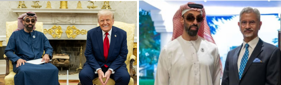 Left, Tahnoun bin Zayid (TbZ) with Trump,  March 18, 2025; right, with Jaishankar, December 17, 2025. For a profile of TbZ by a veteran UAE reporter, read this [31].  To Trump officials, whom he calls his “brothers”,  Tahnoun expresses condescension bordering on contempt for the Indians; to the Indians, whom he calls his “brothers”,  he expresses the same towards the Americans. The Indians believe him.
