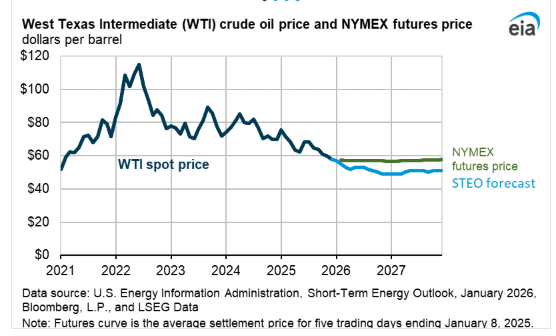 Source: https://www.eia.gov/outlooks/steo/ [13] The data cutoff date is shown in the footnote as end of January 8, 2026.