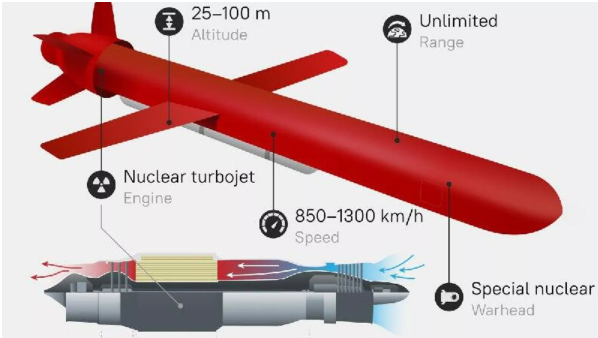 Valery Gerasimov: Comrade Supreme Commander-in-Chief, such a test was conducted on October 21. Unlike previous trials, this one featured a many-hour flight, with the missile covering 14,000 kilometres – and that is not the limit. Vladimir Putin: It is nuclear-powered, right? Valery Gerasimov: It is indeed. It uses nuclear propulsion. Burevestnik’s technical characteristics generally allow for its use with assured accuracy against highly protected targets at any range. During the flight, the missile completed all prescribed vertical and horizontal manoeuvres, showcasing a high capability to evade missile-defence and air-defence systems. Vladimir Putin: And how long was it in the air? Valery Gerasimov: About 15 hours. Vladimir Putin: And that is not the limit?  Valery Gerasimov: No, it is not. [4]”