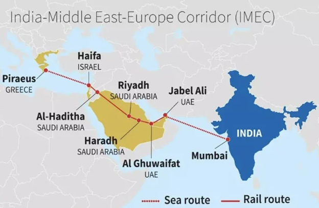 This is what the “Hexagon of alliances” (Netanyahu) and IMEC (Modi) looks like on the map: