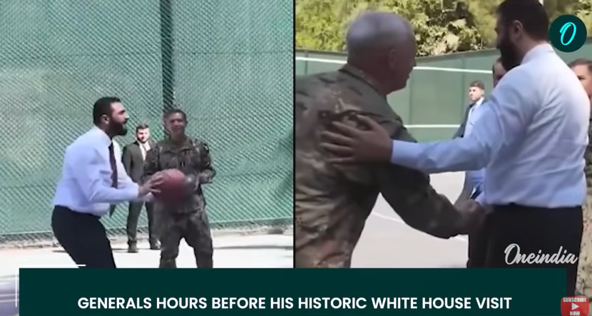 Before the morning trip to the White House, Al-Jolani authorized release of a videoclip showing him playing basketball with a US general. The latter has been named in Moscow reporting as the head of the Central Command (CENTCOM), Admiral Brad Cooper. This is partially correct; the officer in the first frame of the videoclip is Cooper; in the second frame, the officer, older and greyer than Cooper, is Brigadier General Kevin Lambert.