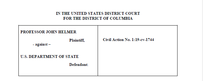 The State Department delayed responding for more than a year, and I engaged an attorney to pursue the legal options for compelling release of the documents. State replied that it was estimating February 2019 as its “estimated date of completion”. No documents were produced, however, and on June 14, 2019, I filed a lawsuit against the State Department in the US District Court in the District of Columbia. This forced the production of a small number of documents; they were nothing more than protocol arrangements for US official visits to Canberra.