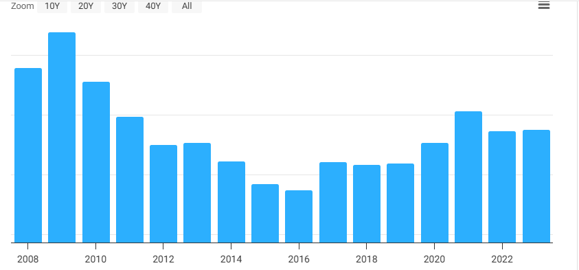 TOTAL SYRIAN FOREIGN DEBT IN USD, 2008-2023